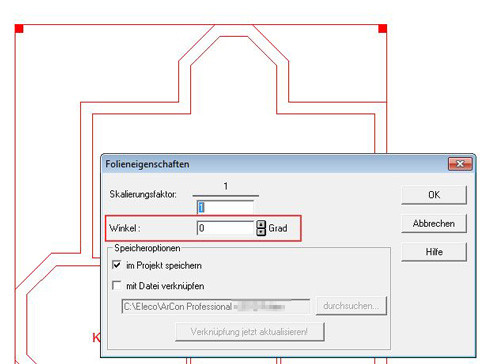 Auf vielfachen Kundenwunsch haben Sie die Möglichkeit, in ArCon eingefügte Folien nachträglich drehen zu können. Dies ist besonders hilfreich, um orthogonal arbeiten zu können.  | |