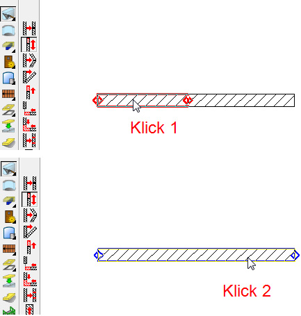 Strg+Shortcut für einige Funktionen nicht unbedingt nötig (so können Sie z.B. den Führungspunkt der Wand mit einfachem Druck auf "W" durchschalten) -