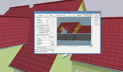 Das Selektieren von Dächern, Gauben, Grundstücken und Grundstücksbereichen ist nun auch im Design-Modus möglich. Somit entfällt das lästige Umschalten in den Konstruktionsmodus um z. B. Änderungen am Dach vorzunehmen.