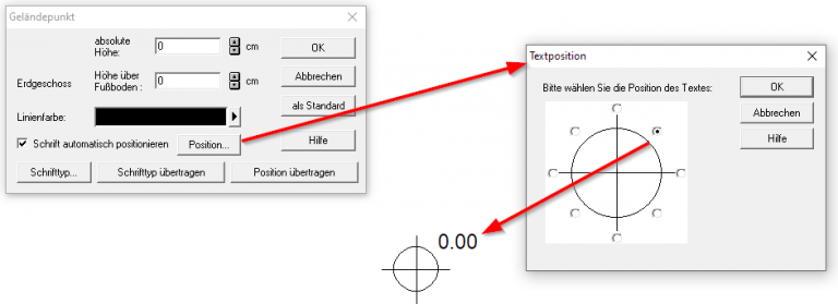 Beschriftung von Geländehöhenpunkten. Kolorierte Pläne lassen sich,