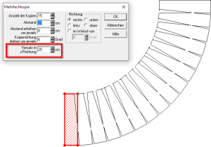 geschaltet, während die Schnittlinie in der Planung sichtbar
